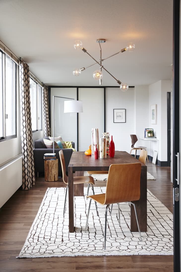 Rugs Under Dining Tables Expert Tips Ideas Tlc Interiors from www.tlcinteriors.com.au In the dining room, i purchased an inexpensive 8′ x 10′ bamboo rug. When it comes to livening up your dining room floors, there's no better place to do so than your local flooring america. The geometric rug, with its fuchsia and orange detailing, really brings the dining area here to life. Give us a call today. We have a wide selection of hardwood, tile, luxury vinyl, laminate, and more to renovate your space. Rugs are a soft piece of furnishing that carpet the area under and around the table grounding it and the dining room chairs too. The dining room is a place of gathering, a place where a family or groups get together to eat and celebrate. Although the interior of the classic dining room in dark colors is well complemented by a white rug.